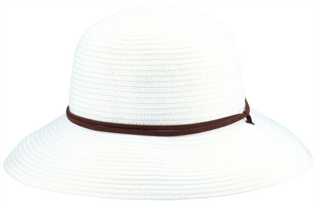 This Wanderlust sun hat features a breathable woven straw construction, a crushable and packable easy-travel design, a narrow vegan leather hatband and chinstrap, and a wide 4.5' inch brim to protect you from the sun. UPF 40+ sun protection.