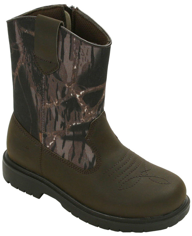 This classic boot has a water-resistant upper, Thinsulate lining and a durable TPR sole plus a cushioned sock for all-day comfort. It even has an inside zipper and gusset to make getting it on a wriggly kid a breeze! Has simulated leather upper.