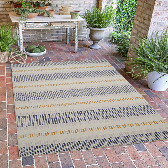 A fun and fashionable indoor outdoor rug can liven up any space it occupies making this the perfect accent to a kitchen or patio. These rugs are the perfect combination of beauty and brawn with a machine washable feature and flat pile grounded by a non-slip back with colors and patterns that will wow your guests. Fully Outdoor ready with a UV Fade Resistance feature and an interior that is made for breathability which only enhances a quick dry material to withstand rain Showers and sprinklers.