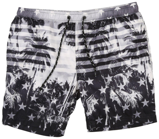 Distortion brings beach-influenced style to your favorite styles. These comfortable boardshorts feature an Americana design on fast drying lightweight fabric, fade resistance technology, two side seam pockets, one back pocket, and a drawstring for a comfortable fit. Inseam measures approximately 8 in.