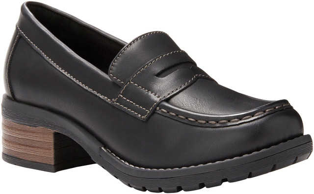 The Holly's classic penny loafer profile finds its perfect mate with an elevated sole. Fabric-lined synthetic upper conforms to your foot for a custom fit. Fabric-lined memory foam comfort insole supports andconforms to the curves of your foot.