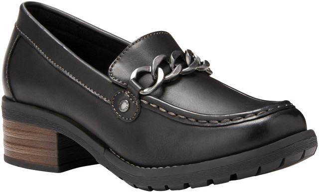 The timeless Nora slip on is detailed with chain hardware. Synthetic upper with fabric-lining. Fabric-lined memory foam comfort insole supports & conforms to the curves of your foot. Textured rubber outsole provides great slip-resistance, durability & shock-absorbing cushioning.