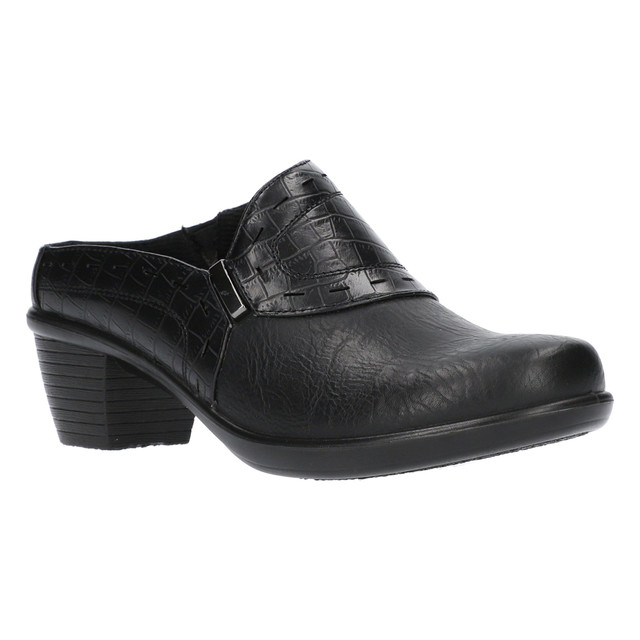 Slip into the intricate fresh upper design and ornamentation of the Cynthia by Easy Street and you will meet the comfort and style you have desired. Enhanced with the Easy Motion by Easy Street ultra light insoles this heeled mule makes fashion functionable.