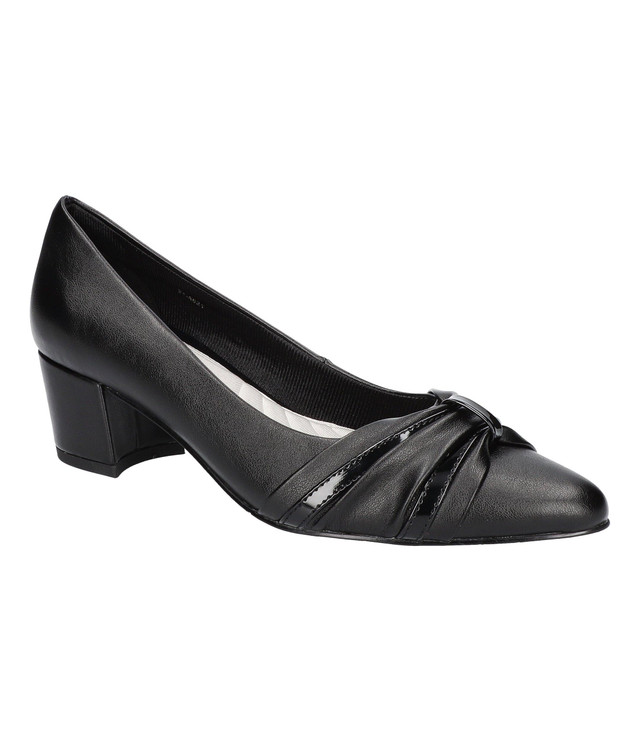 A striking ruched overlay bow detail ensures that the Millie by Easy Street will be a fashionable addition to your wardrobe. Designed with a contemporary underslung block heel, Easy Flex outsole, and generously padded insole give this contemporary style all the fashion and comfort you need to take on your day or night.