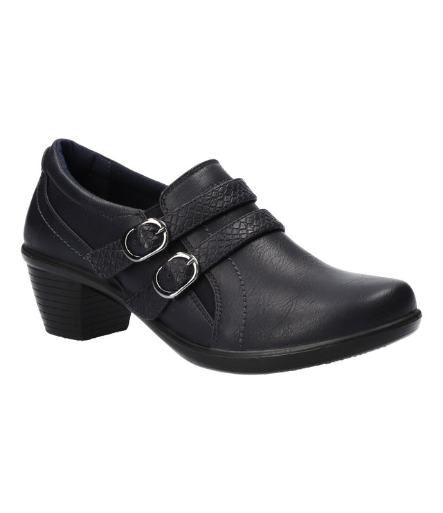 The Stroll from Easy Street is designed to enhance your day with both style and comfort. The unique double buckle ornamentation with a faux snake overlay add a little pop to any outfit. The lightweight Comfort Wave construction, Easy Motion ultra light insoles and stretch for fit features help create the ultimate comfort experience.