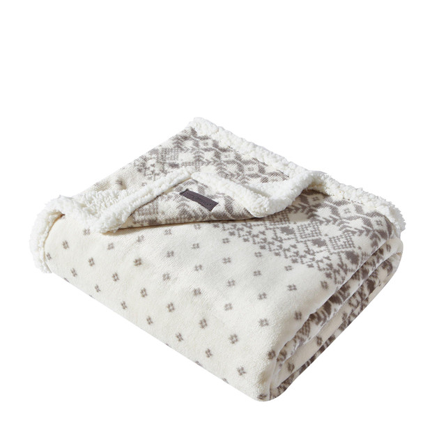 The Eddie Bauer best-selling plush throw collection is timeless and seasonless. Plush fleece is extremely soft and cozy. Each iconic design reverses to Eddie's iconic faux shearling popcorn fleece for the ultimate warmth. Easily packable and perfect for travel. Packaged thoughtfully in a ribbon and insert card, ready for gifting. Mesurments 50'' x 60''