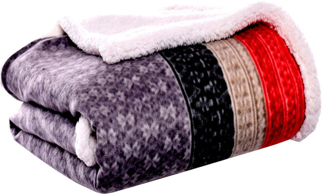 Printed on polyester, this decorative throw blanket features an stripe pattern. Throw reverses to a plush sherpa fleece for comfort. Measures 50'' x 70''.