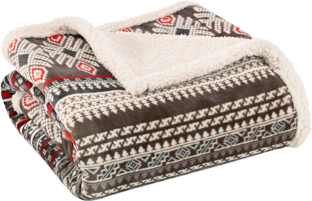 Printed on polyester, this decorative throw blanket features an aztec pattern. Throw reverses to a plush sherpa fleece for comfort. Measures 50'' x 60''.