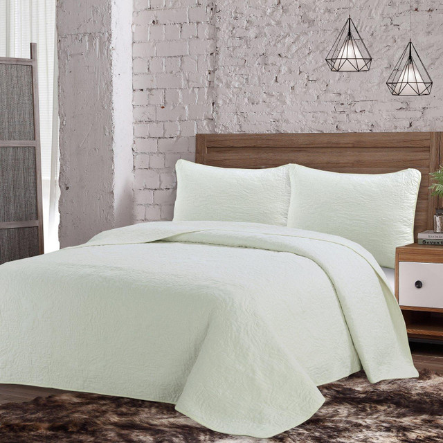 Estate Home brings contemporary style to your bedroom. This quilt set features a solid design and a medallion stitched detail. Set includes one quilt and two pillow shams (one for twin size).