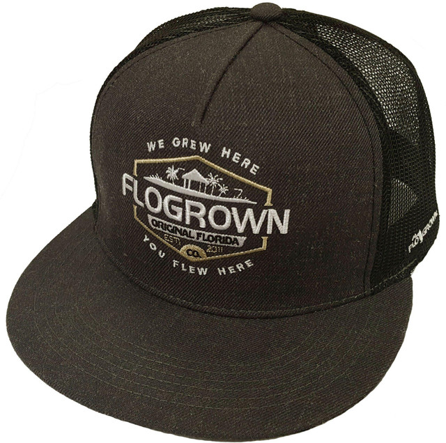 Florida grown or not, celebrate the exciting Florida lifestyle with FloGrown apparel. Hat features a mesh back, a FloGrown logo embroidered on the front, and an adjustable back.