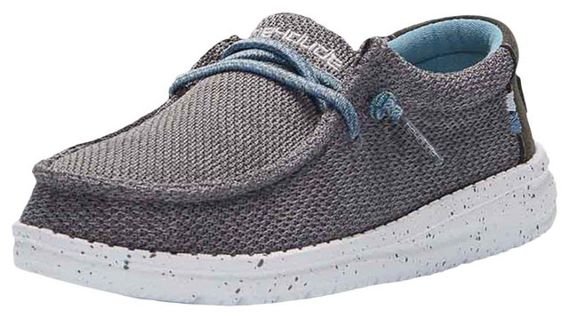The Hey Dude Boy's Wally Youth Sox Casual Shoes are the perfect match to your little one's high energy personality. These lightweight and rugged casual shoes are made of a stretch-knit upper with comfortable memory foam so no matter where he roams he'll have the support he needs to enjoy his adventures. It features an Easy-On System that will allow him to slip these shoes on and go, plus Flex and Fold Technology that will make storing and transporting these shoes a breeze!