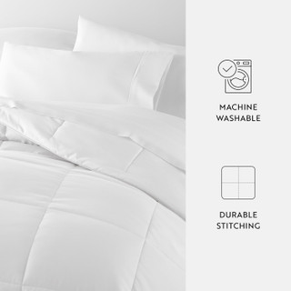 All Season Down Alternative comforter from the Home Collection features the perfect loft and Down-like feel to keep you warm and toasty while you sleep. Designed for healthy living and 100% hypoallergenic for allergy sufferers, this comforter features a lightweight shell and baffle box stitching. California King/King measures 108''L x 94''W. Full/Queen measures 92''L x 92''W. Twin/Twin XL measures 70''L x 90''W.