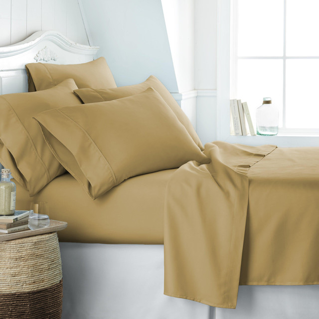 Home Collections Luxury Ultra Soft sheet set is designed with your comfort in mind. Made of the finest imported double-brushed microfiber yarns, creating a new standard in softness and breathability. Set includes one flat sheet, one fitted sheet, and four pillowcases (two for twin and twin XL size). Fits up to 16'' pocket.