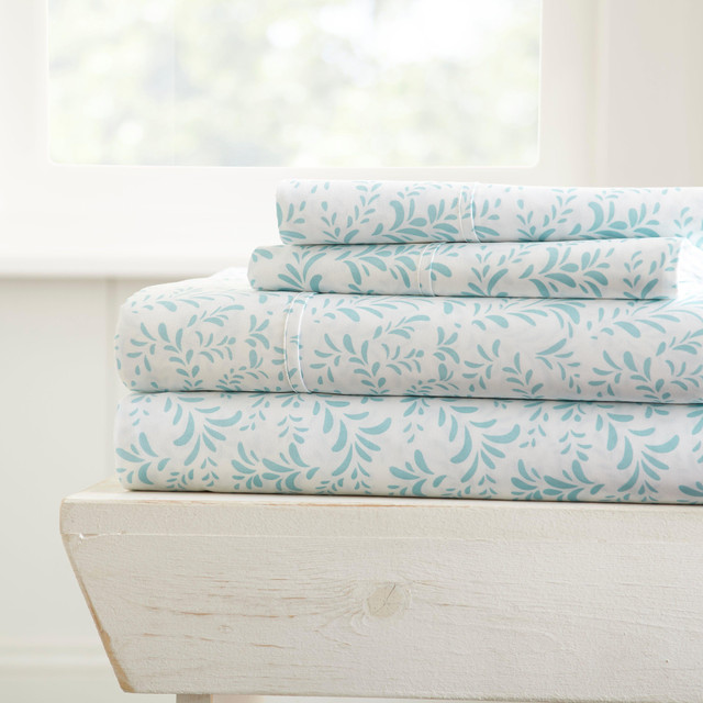 Home Collections Premium Ultra Burst Of Vines sheet set is designed with your comfort in mind. Add a designer accent to your bedroom décor with this timeless vine pattern artistically created to be a wonderful addition to any bedroom. Made of the finest imported double-brushed microfiber yarns creating a new standard in softness and breathability. Set includes one flat sheet, one fitted sheet, and two pillowcases (one for twin size). Fits up to 16'' pocket.
