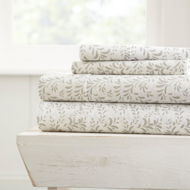 Home Collections Premium Ultra Burst Of Vines sheet set is designed with your comfort in mind. Add a designer accent to your bedroom décor with this timeless vine pattern artistically created to be a wonderful addition to any bedroom. Made of the finest imported double-brushed microfiber yarns creating a new standard in softness and breathability. Set includes one flat sheet, one fitted sheet, and two pillowcases (one for twin size). Fits up to 16'' pocket.