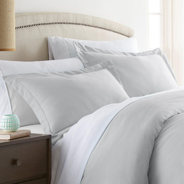 Add a pop of color to your bedroom decor with this sham set by Home Collections. Features 100% double-brushed microfiber yarn fabrication, hypoallergenic, anti-microbial and anti-bacterial, wrinkle resistant, wicking properties, and superior weave for durability. Set includes two pillow shams.