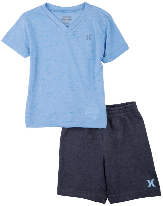 Hurley provides all-day comfort and casual surf designs for active lifestyles. He is cool and comfortable in these 2-pc. set featuring a lightweight knit fabric, a short sleeve tee with a logo on the chest and a coordinating pair of shorts.