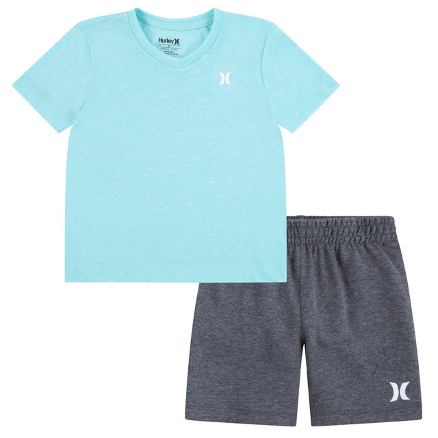 Hurley provides all-day comfort and casual surf designs for active lifestyles. He is cool and comfortable in these 2-pc. set featuring a lightweight knit fabric, a short sleeve tee with a logo on the chest and a coordinating pair of shorts.