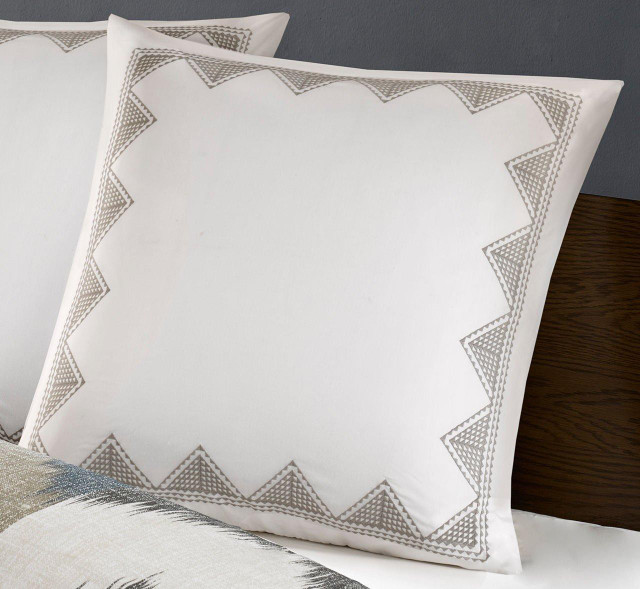 Add a touch of drama to your bedding with the INK+IVY Isla Euro Sham. This sham features a geometric design embroidered along the edge of a white ground. This sham features a topical antimicrobial treatment that prevents bacteria buildup to keep the fabric fresher, longer. This euro pillow cover can be easily mixed and matched with your home decor to create that perfect look. Inlcudes one euro pillow cover, Filler pillow is NOT included. Euro sham measures 26 in. x 26 in.