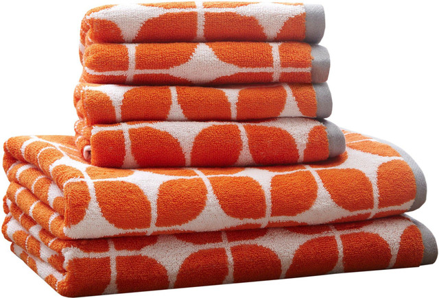 Intelligent Design Lita 2-ply ring spun towels are cotton jacquard woven making them reversible in contrasting colors. Towels feature bold geometric print with a dobby border. Set includes 2 bath towels (28'' x 54'') and 4 hand towels (16''x 26'').