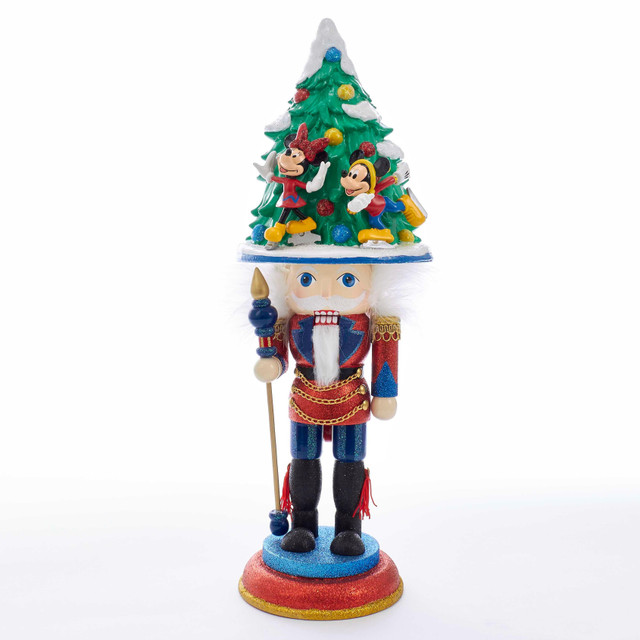 Designed by renowned artist Holly Adler, Hollywood Nutcrackers is a whimsical collection of nutcrackers created exclusively for Kurt S. Adler, Inc. and features an assortment of designs including Christmas, fantasy and everyday nutcrackers. This nutcracker features a soldier design topped with a large Christmas tree, as well as Mickey and Minnie ice skating together in front of the tree. Measures 5.31 in. x 4.33 in. x 16.25 in.