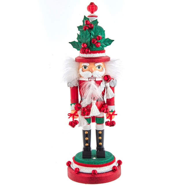 Hollywood Nutcrackers is a whimsical collection of nutcrackers created exclusively for Kurt S. Adler, Inc. and features an assortment of designs that put a unique, vibrant, memorable twist on traditional nutcrackers. This 17-Inch Hollywood Musical Jingle Bells Nutcracker features a festive red and green design. When wound up, this musical nutcracker plays the tune Jingle Bells.
