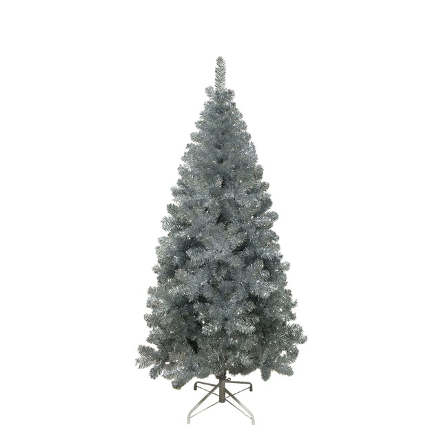 Add a beautiful and festive touch to your holiday lighting and decor with this 6-Foot Silver Point Pine Tree from Kurt Adler. It's all-silver design features 630 tips, a hinged structure, a 43-inch girth, and a metal stand. This 6-foot tree is un-lit and comes in three sections that are easily put together. Measures 37 in x 37 in x 72 in.