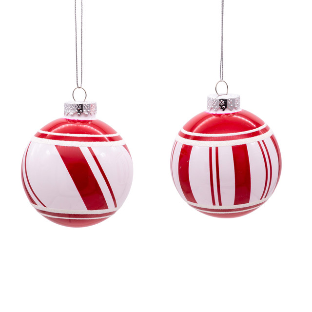 These Kurt S. Adler 80MM Red and White Glass Ball Ornaments, 6 Piece Set are a classic addition to your Christmas tree décor. This box set includes six 80MM shiny red and white glass ball ornaments and they are beautiful ornaments that are a must have to complete your Christmas tree. Measures 3.15 in. x 3.15 in. x 3.15 in.