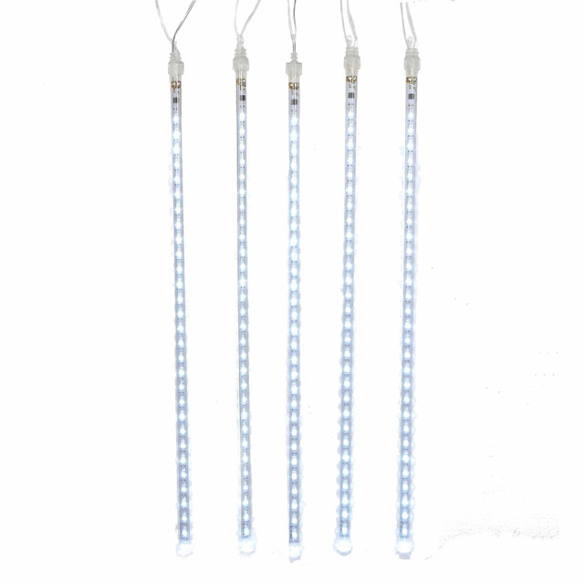 This Kurt Adler 11.81-inch 5-light snowfall light set gives off a fun illusion of having bright snow fall down outdoors year-round! Each light looks as if it falling down like a snowflake. This set comes with an adaptor and has 18-chips per tube (90 lights in total). This set also features a 72-inch lead wire and 19.68-inch spacing.