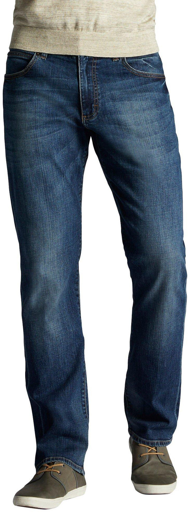 Lee Extreme Motion jeans for men feature a tapered leg, casual 5-pocket styling, and a solid color design. Lee offers an updated style and authentic quality.