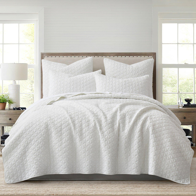The Rowan Reversible Quilt & Sham Set by Levtex Home is inspired by boho chic fashion. This reversible quilt features beautiful chic crinkle quilted diamond design on the front, reversing to a solid cream on the back. The Quilt & Shams have a microfiber front and back, filled with a cotton-rich filler and are machine washable. Enjoy this for years to come!