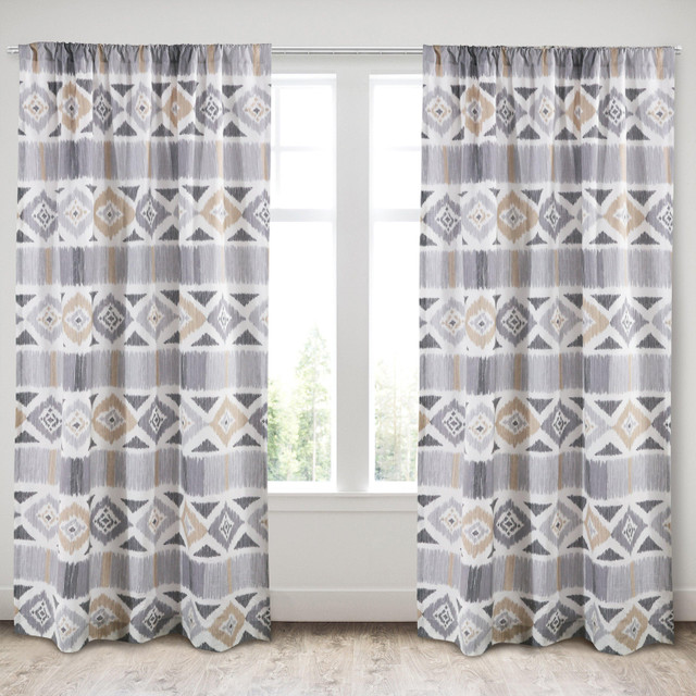 The Santa Fe curtain panel complements the Santa Fe bedding collection but can be used to accessorize any window in your home. These window panels feature a geometric ikat pattern expressed in stripes of charcoal, grey and taupe and will complement so many design choices. One of our most popular collections, Santa Fe is inspired by age-old patterns. Panel measures approximately 55 x 84 inches.