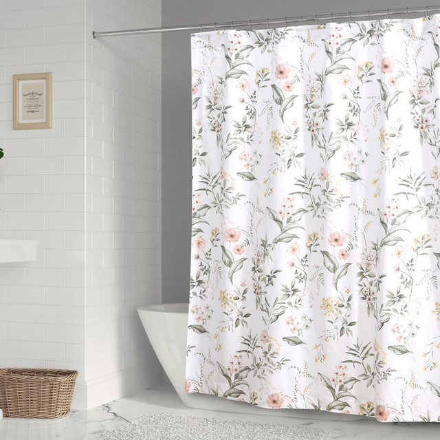 The Viviana shower curtain complements the Levtex Home Viviana collection. This is the perfect accessory for any bathroom. Sized at 72 x 72 inches, this shower curtain features an intricately detailed botanical floral pattern. Made from 100% cotton, the Viviana decorative shower curtain is easy to care for. Comes with button holes ready for installation. Hooks and liner are not included.