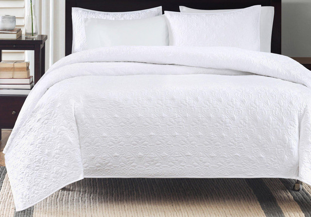 Quebec is the perfect coverlet to use as a layering piece or an alternative to your comforter for a new solid look. Coverlet features a classic stitch pattern. Set includes coverlet and (2) pillow shams. 100% polyester microfiber.
