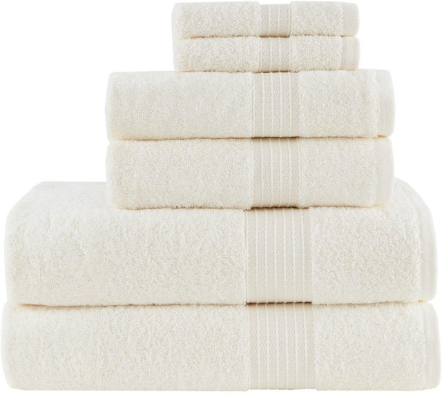 Madison Park Organic Cotton Bath Towels are exceptionally absorbent and feature a classic dobby trim, bringing modern style to your space. Set includes: 2 bath towels (54'' L x 30'' W), 2 hand towels (30'' L x 18'' W), and 2 wash towels (13'' L x 13'' W).
