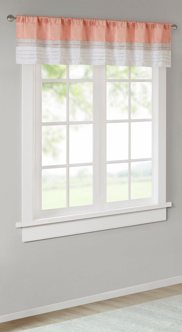 Add a casual update to your home with the Madison Park window valance. This window valance features color block stripes in hues of grey and ivory, combined with pintuck detailing for beautiful texture and dimension. Fits up to a 1.25 diameter rod. Measures 50''W.