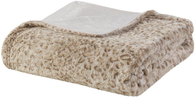 The Madison Park Zuri oversized throw features a luxuriously soft faux fur and reverses to a solid faux mink. This faux fur throw is the perfect modern update and adds a glamorous accent to your home. Measures: 60 x 70 inches.