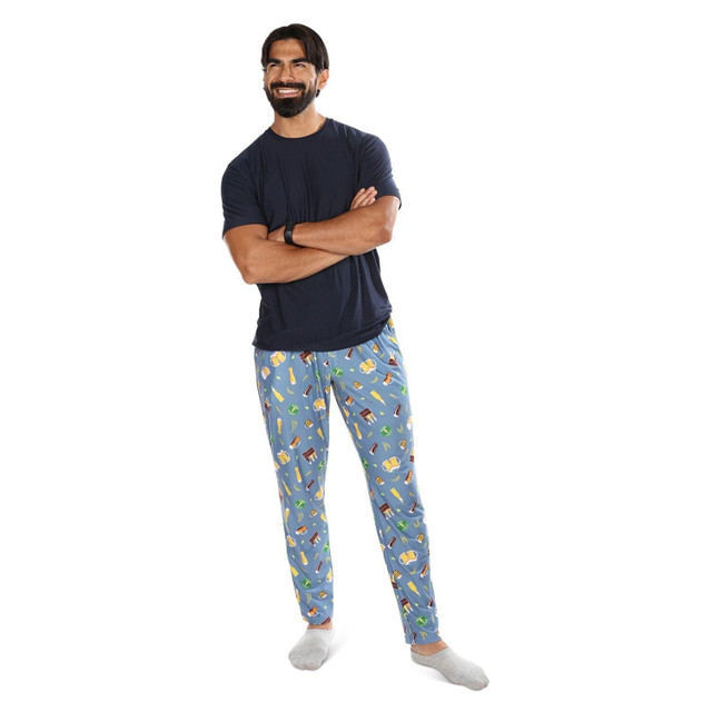 Give up sleepless nights, and gain better zzz's in our Craft Beer Two Piece PJ Set. Soft and silky yarns are woven together to create a soft and breathable jersey crewneck so you can say goodbye to the unbearable night sweats. Printed bottoms are lightweight and designed with a fun craft beer pattern. Comes with a string bag for easy gifting and transportation. Fabrication 95% polyester, 5% spandex.