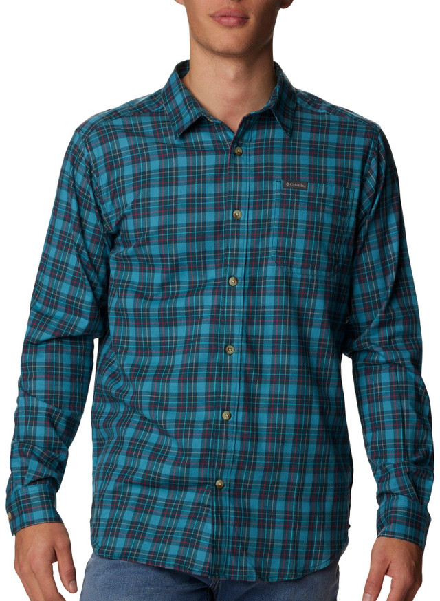 Keep each adventure going strong with this vapor ridge III long sleeve shirt by Columbia. Long sleeve shirt features 2-way comfort stretch, button down closure, chest pocket, point collar, button cuff sleeves, a versatile plaid pattern design for easy matching and a standard fit. Fabrication 97% cotton, 3% elastane. The center back length approximately 30 inches.
