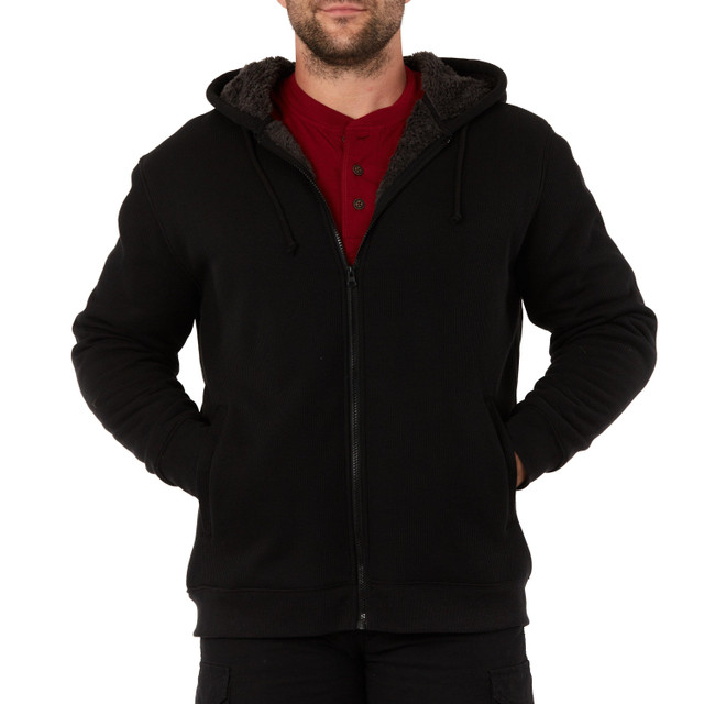 This comfortable Hooded Sherpa-Lined Thermal Jacket will be the one you grab as you're headed out the door. Made of super soft microfiber sherpa bonded to thermal knit is the perfect comfy grab & go Jacket this Fall & Winter.