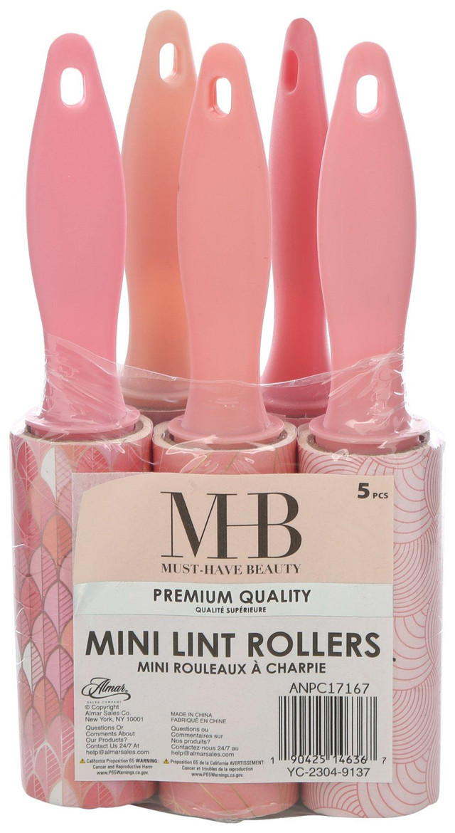 These easy to carry mini lint rollers easily removes lint, pet hair, and dust from clothing! Features a pretty pink design. Comes with 5 total mini rollers.