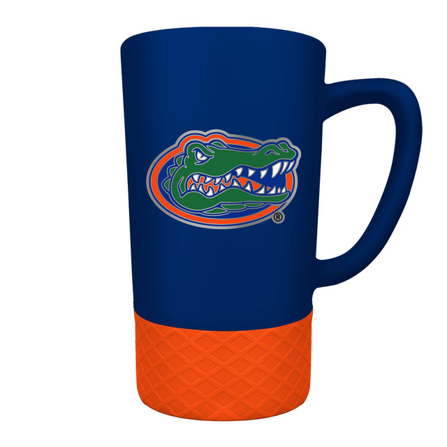 Show your team spirit! This Florida Gators Ceramic Jump Mug is powder coated in team colors with an alternate color silicone grip, and features a high quality team metal emblem. 15 oz.