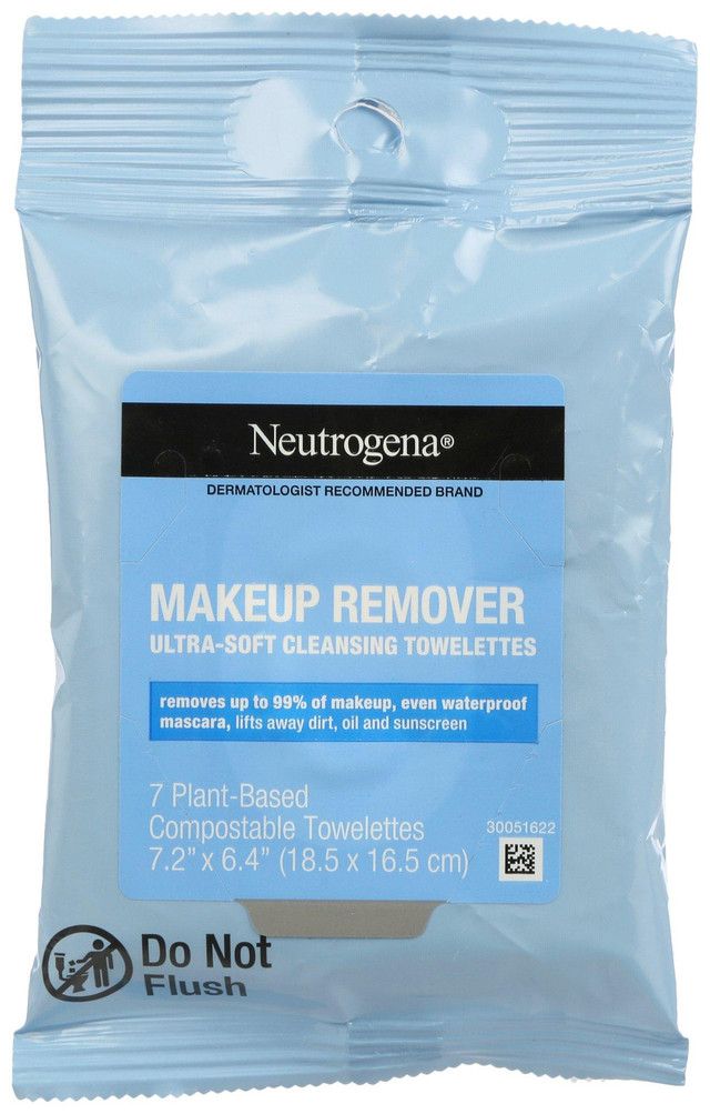 This 7-Ct. Makeup Remover Ultra-Soft Cleansing Towelettes contain a triple emollient blend to condition, leaving skin refreshingly clean with no heavy residue. Removes up to 99% of dirt, oil, sunscreen, and waterproof makeup. Scented. Contains 7 pre-moistened plant-based compostable towelettes 7.2 in. x 6.4 in.