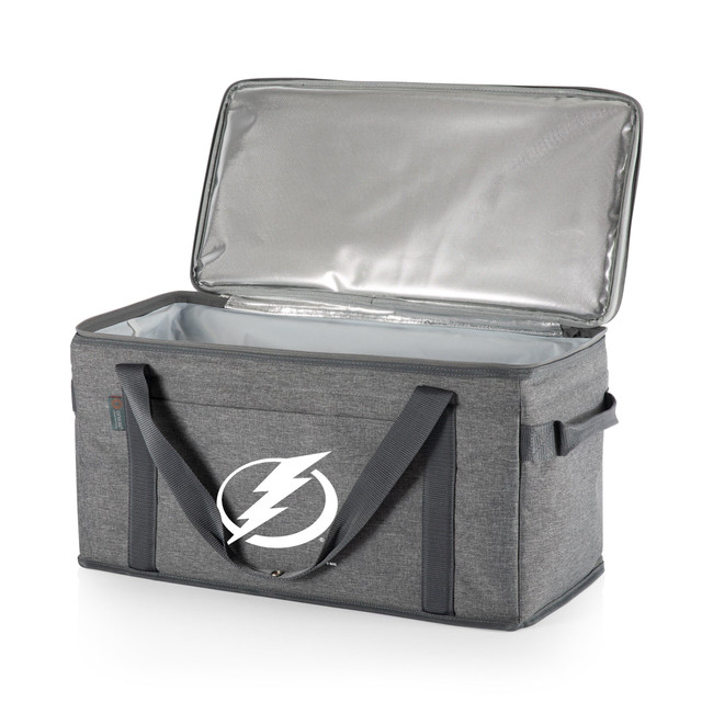 The Tampa Bay Lightning 64 Can Collapsible Cooler is an insulated soft beverage tote with seriously big capacity! This soft-sided, insulated picnic tote features a water-resistant interior and easily compacts for storage or post-party transport. When youre through all 64 cans, just secure it to a large pack with the included securable bungee cord or fold it up into another carrier. This insulated cooler tote is versatile, durable, and ready for some action!