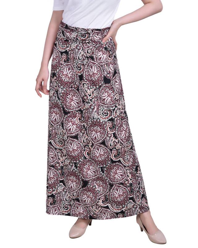 Perfect for your back-to-the-office wardrobe or everyday wear, this pull-on skirt from NY Collection is a great addition to your wardrobe. This skirt features a stylish faux belt with ring detail.