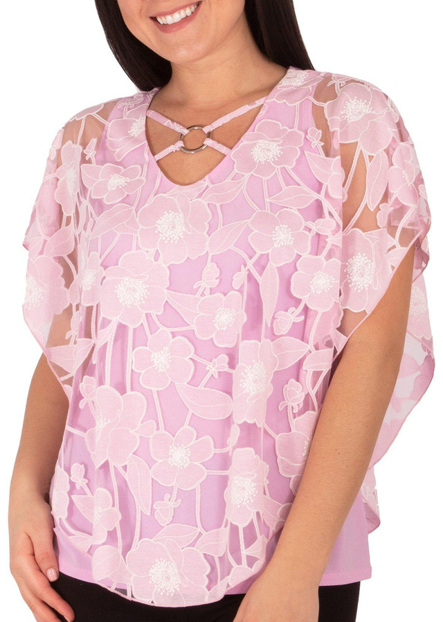 NY Collection Petite Peony Flower Puff Print Poncho Top