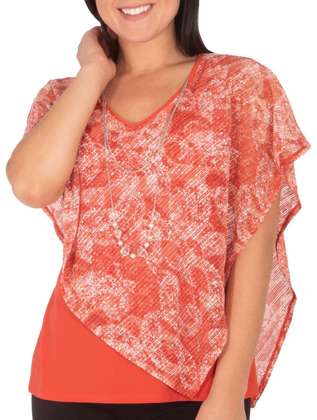 No need to look for layering pieces when you wear this NY Collection poncho style blouse with it's matching tank. Even your jewelry is already included as it comes with a detachable necklace.