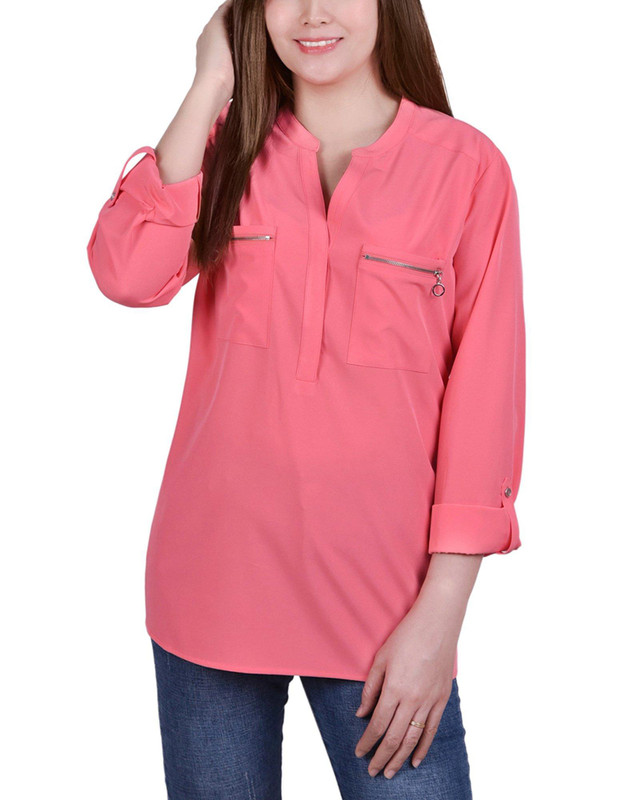NY Collection Petite Roll Tab Zip Pocket Tunic Top