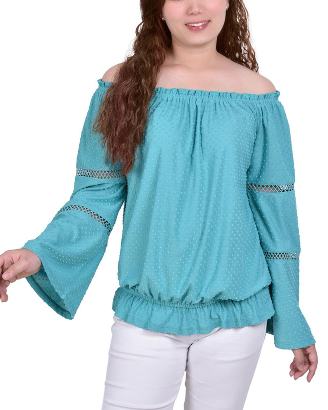 NY CollectionNY Collection Petite Swiss Dot Off The Shoulder Blouse