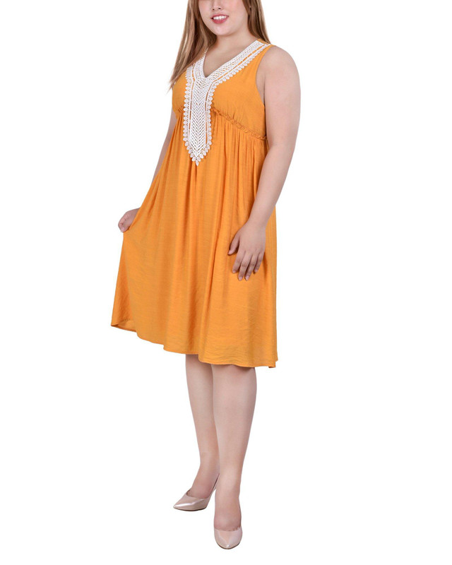 NY Collection Plus Crochet Neckline Empire Waist Dress